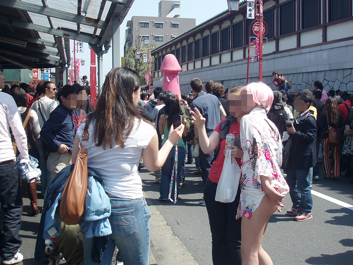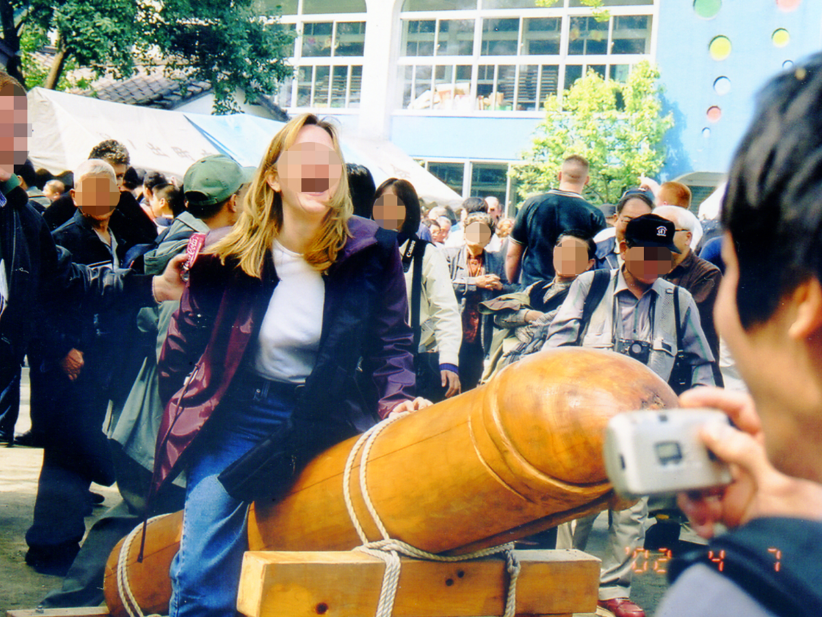 境内の人だかりが一番激しいところでは、巨大な木製のチンポが設えてあって、そのチンポに登って、可愛い娘、あんまり可愛くない娘、受けたがっているおばさんやエロそうだったり可愛かったりの白人女、